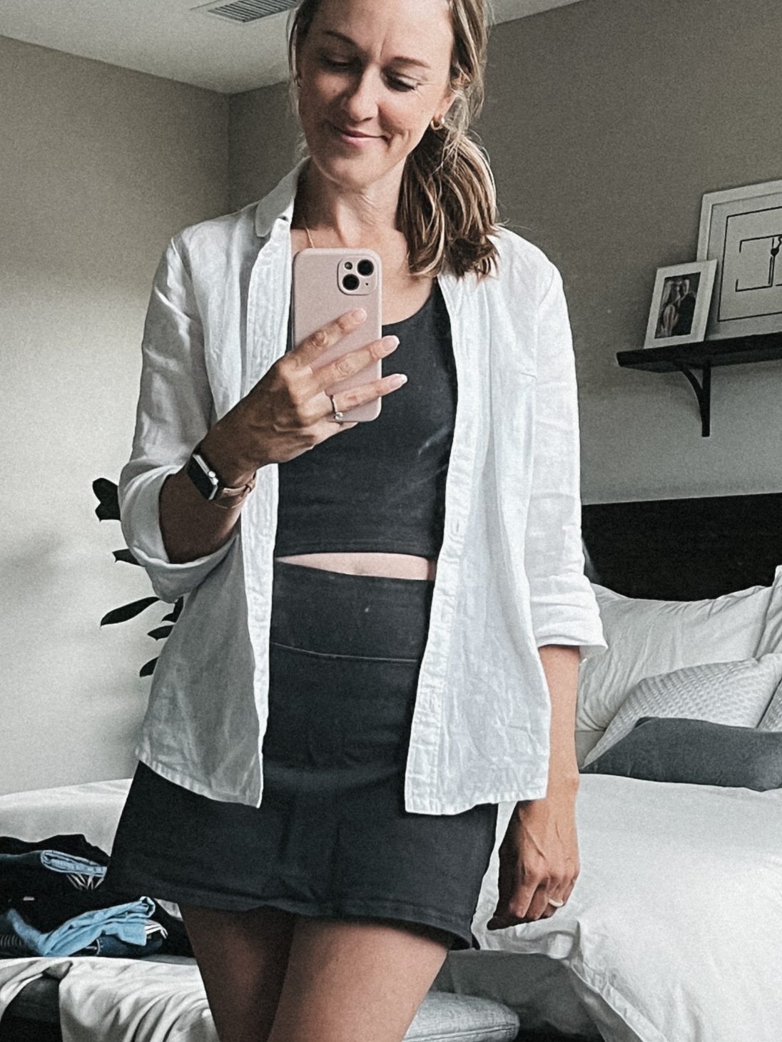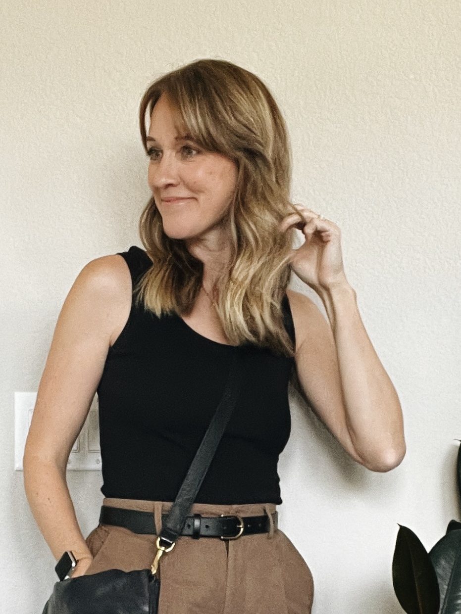 - Linen Reversible Tank in Black (code KIMBERLY20 for 20% off)