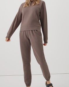 Terry Crew Sweatshirt and Sweatpant– Ok, another cozy option because the matching sweats set is a trend that seems to be sticking around and this one in particular is just so easy to wear as is or style with a denim jacket for school pickup and running errands.