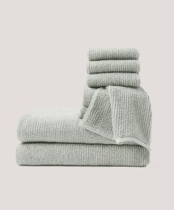 Spa Rib Bathroom Towels-Made of organic cotton from Turkey, I love how these towels create a calming, spa-like atmosphere. Throw in your favorite essential oil scent, and your gift set is complete!
