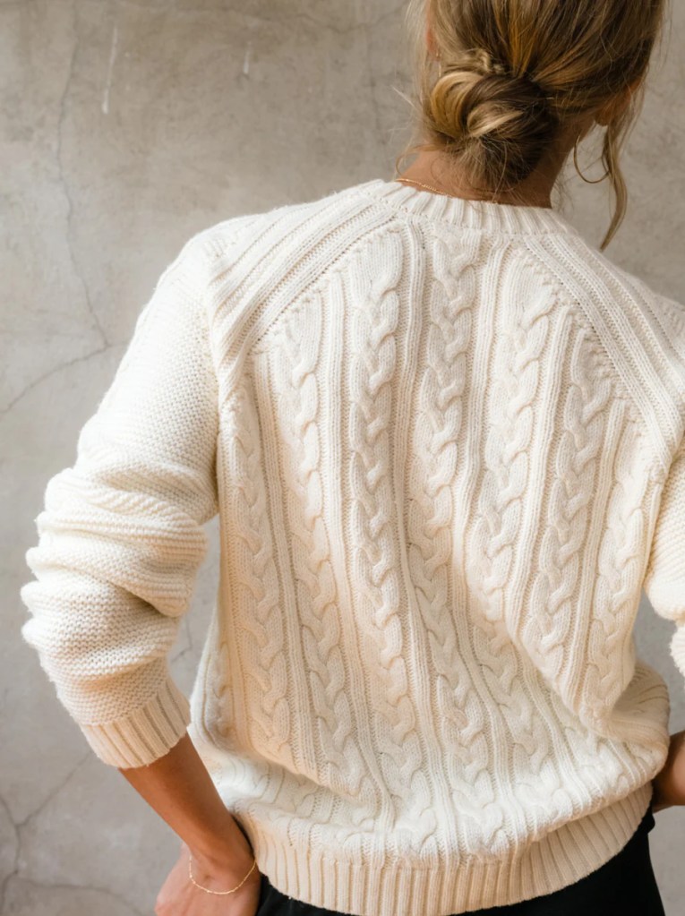 Claudette Fisherman Sweater– If you’re looking for a classic, here she is! This is an updated design of the classic fisherman, and it’s made with a cotton blend. (Code KIMBERLYHOLIDAY40 gets you 40% off)