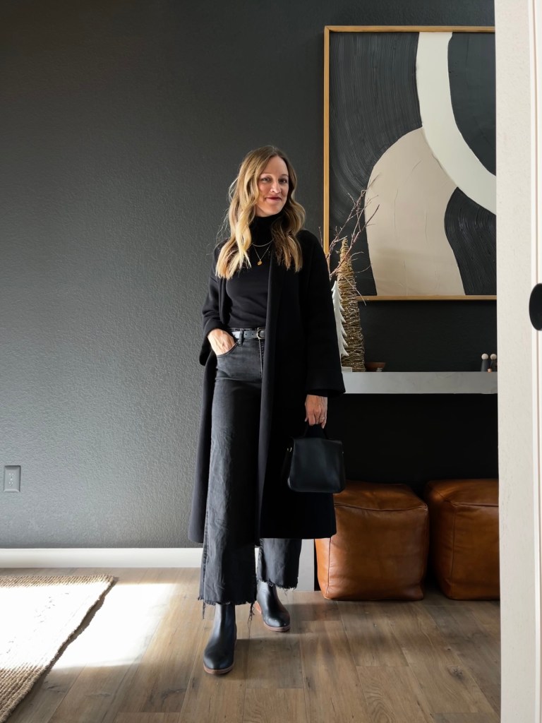 Sticking to one color works for every single occasion, in my opinion. I chose black because it’s my personal favorite but a cream/white outfit would be beautiful for holiday events, too!