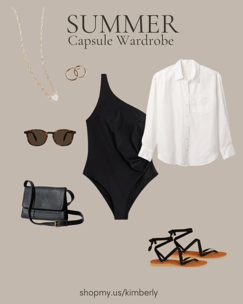 I prefer to share photos of myself actually wearing these pieces from my capsule wardrobe, but in an effort to be more present with my kids this summer I won’t be capturing as much content. However, I’ll include some outfit ideas to use as inspo!