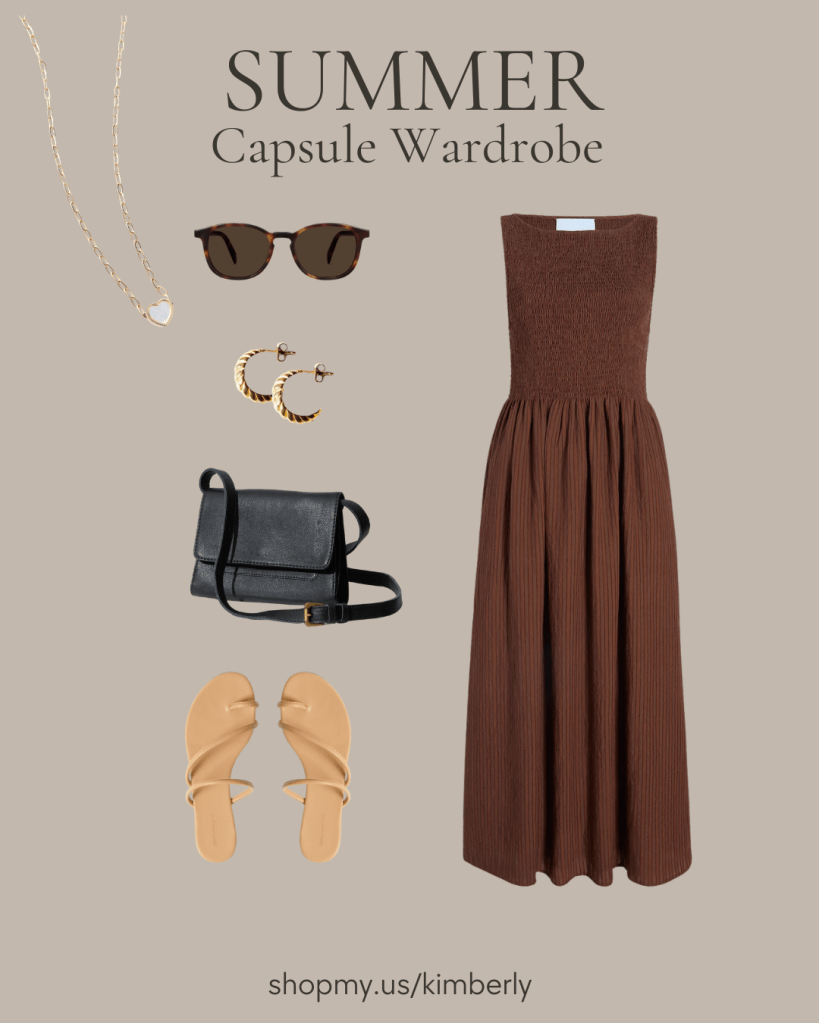 - Smocked Tank Dress– currently sold out in brown but available in other colors, as well as another style in brown